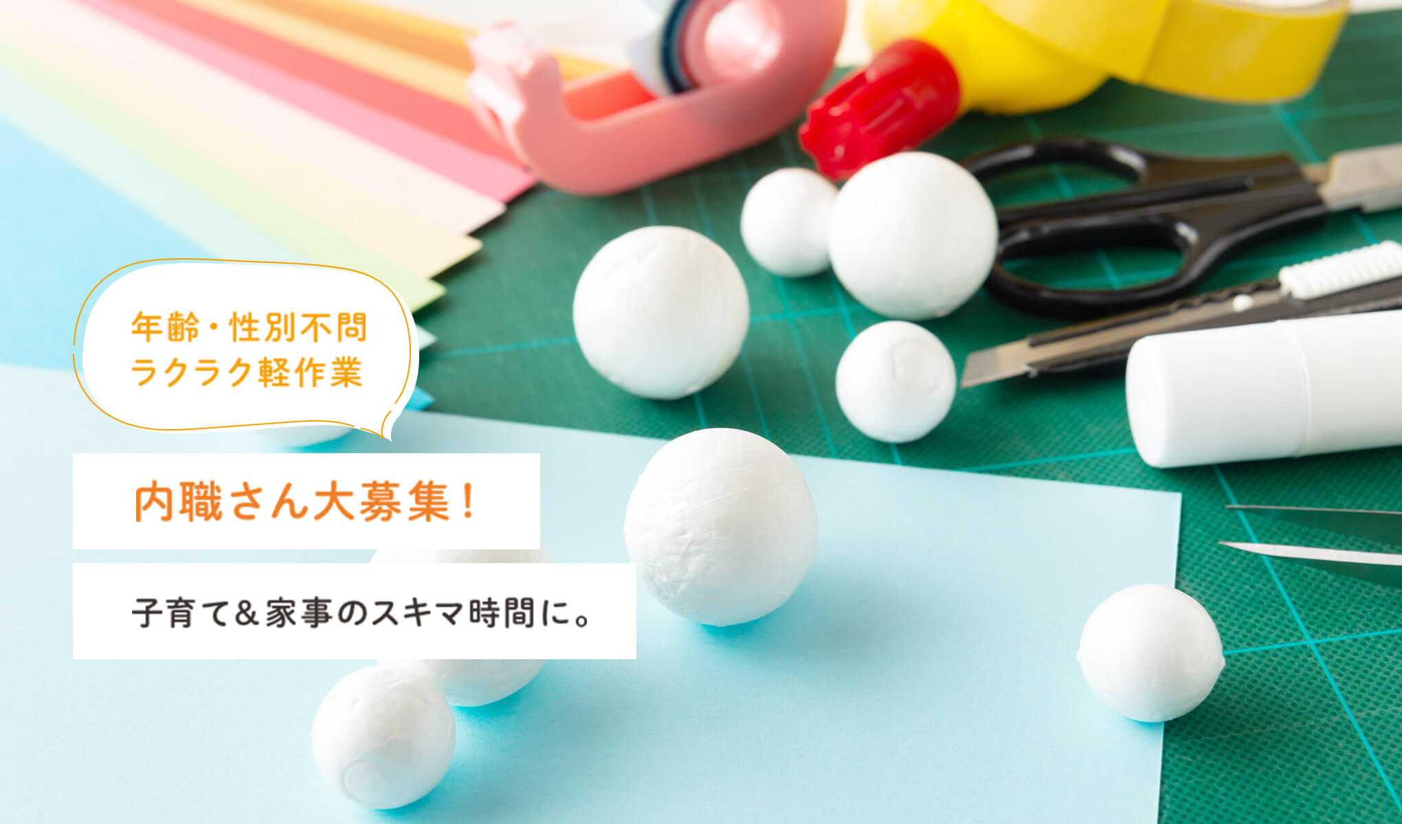 自宅で働ける、簡単な手作業などの内職業務です。 スケジュールは自由に調整でき、成果が分かりやすくやりがいのあるお仕事です!お気軽にご応募ください。